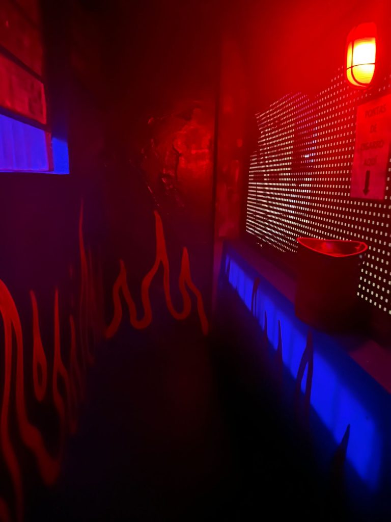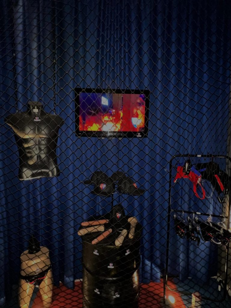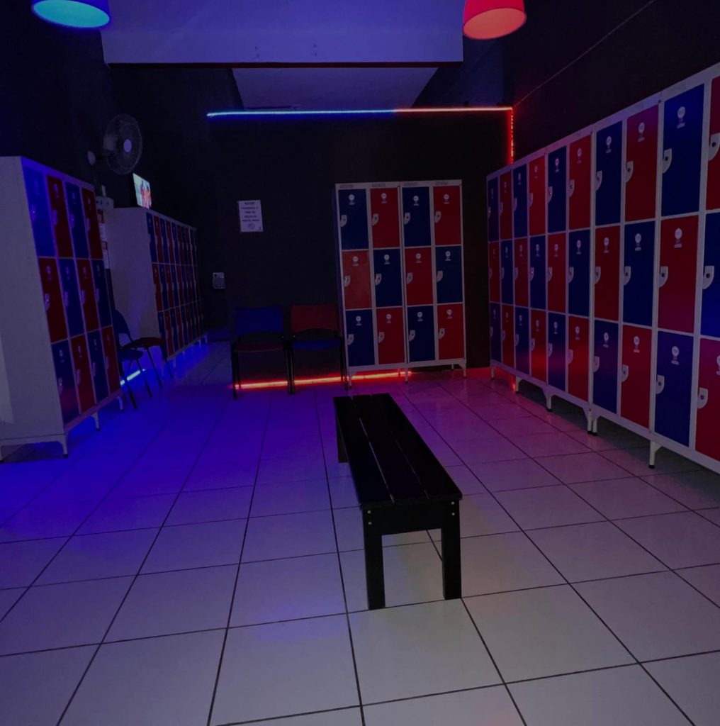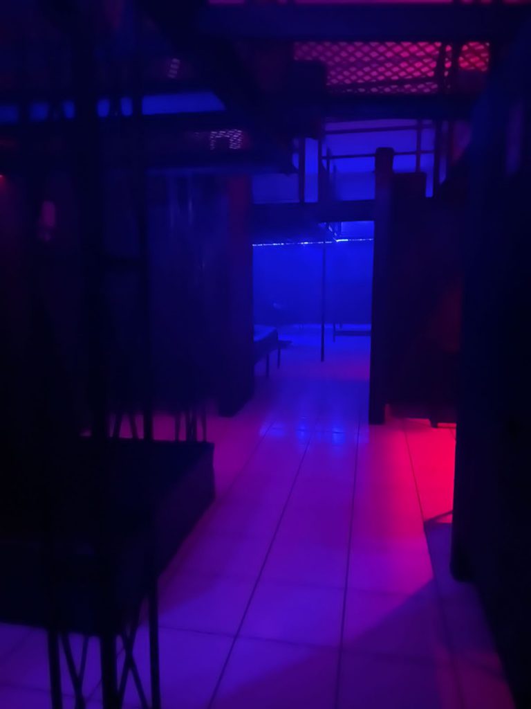 São 400m2, bar completo, TVs , armários, duchas, duchas higiênicas, ambientes climatizados, labirinto cruising (com slings, pissing zone, camão, darkroom, etc).